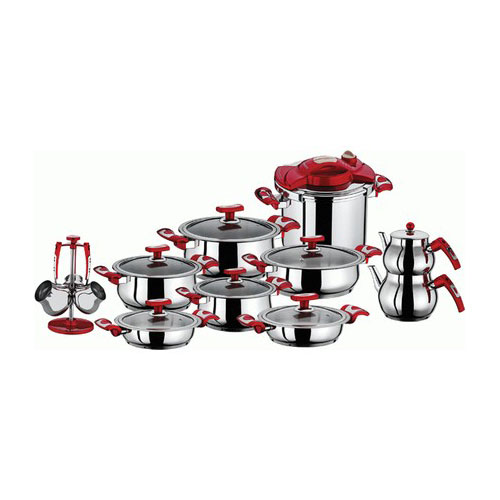 - Çap-Litre:18,20,22 cm Tencere,18-20 cm Omlet,26 cm Karnıyarık,Çaydanlık Seti,Cezve Seti,7 lt Düdüklü Tencere