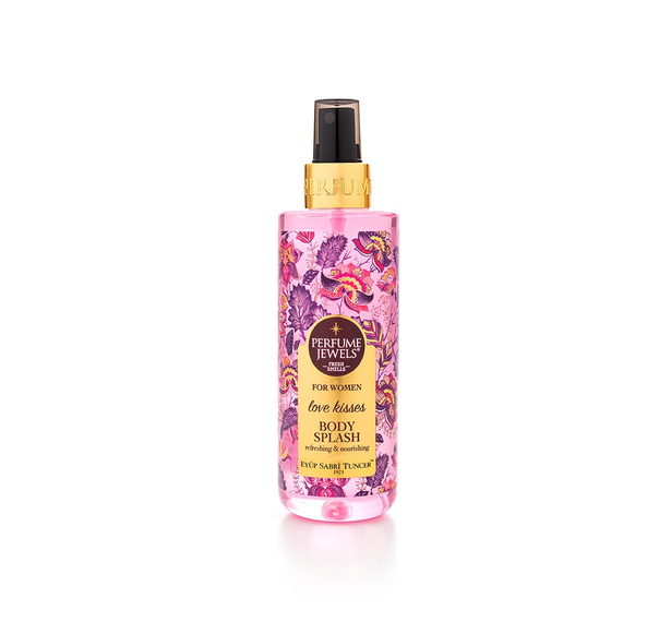 - Tutkunları için özenle tasarlanan Perfume Jewels Love Kisses 250 ml Vücut Spreyi mor renkli meyveler üst notalarda yer alırken kokunun kalbine Shangri-la sarı şakayık çiçeği ve orkide ile inilmiştir. Vanilya dip notalarıyla muhteşem kombinasyonu sonucu tasarlanan büyüleyici koku profili ile cilt üzerinde hafif ve tazeleyici hoş bir koku bırakır.