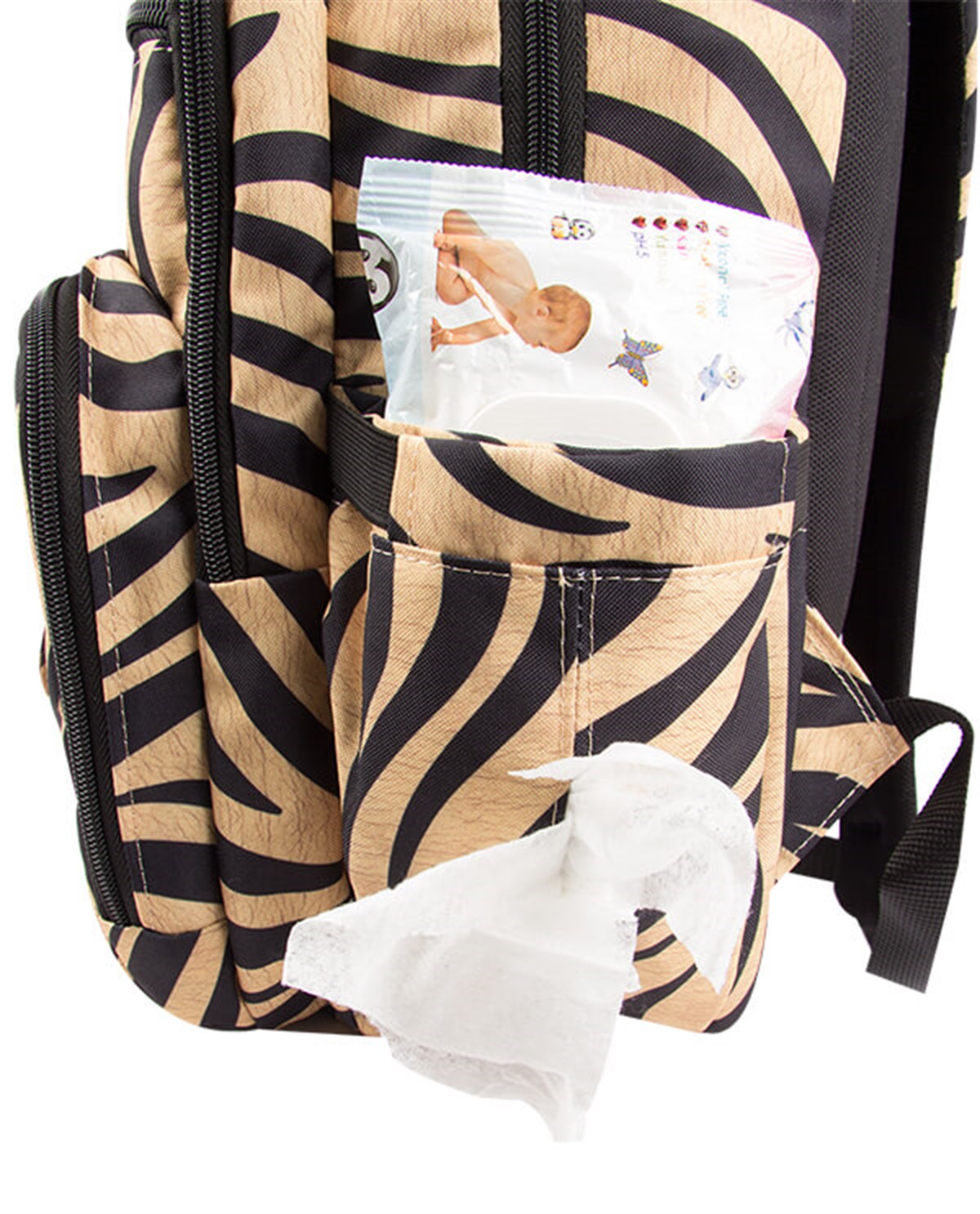 - Biberonlar, ıslak mendiller, bebek bezleri kolaylıkla ulaşılabilmesi için ön göze yerleştirilebilir.