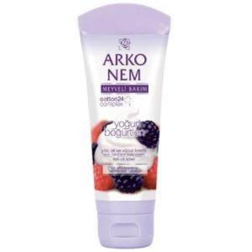 Cildi nemlendiren, besleyen ve rahatlatan yoğurt, güzellik maskelerinin vazgeçilmezlerindendir. Böğürtlen ise anti-oksidant özelliği ile cildi serbest radikallerin zararlarından ve yaşlandırıcı etkilerinden korur. Yeni Arko Nem meyveli Bakım Yoğurt&Böğürtlen yüz, el ve vücut kremi içerdiği yoğurt ve böğürtlen özlerinin yardımıyla cildinizi neme doyururken cildi yatıştırır, rahatlatır. Tadına doyulmayan böğürtlen ve yoğurdun dinlendirici kokusuyla sizi ve cildinizi günün stresinden arındırır. Cotton24 Complex içeren özel formülüyle de cildinizi 24 saat boyunca nemlendirir ve pamuksu bir yumuşaklık sağlar.