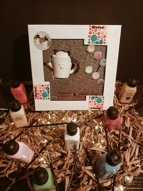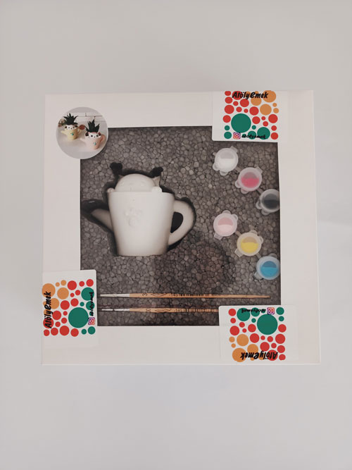 AtölyEmek Fincan Kedisi Taş Saksı Boyama Seti