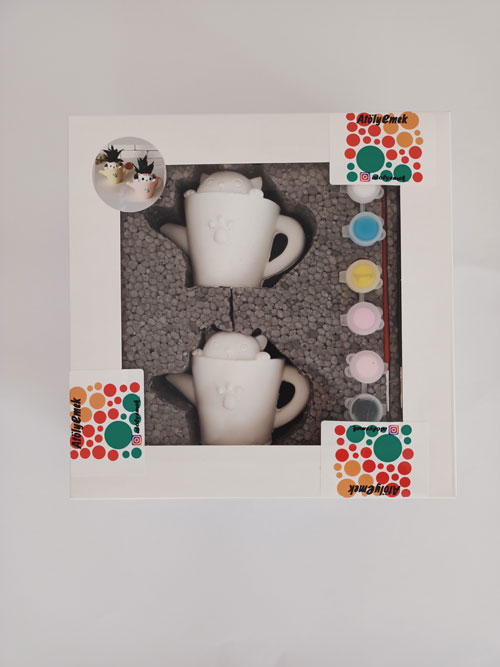 AtölyEmek 2 Adet Maxi Fincan Kedisi Taş Saksı Boyama Seti