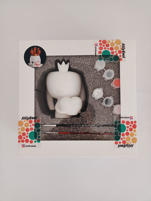 AtölyEmek Taçlı Tavşan Taş Saksı Boyama Seti