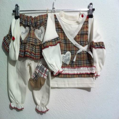 Ayfi Baby 1169 Lüks Kareli Pantolon Etekli 4'lü Kız Set