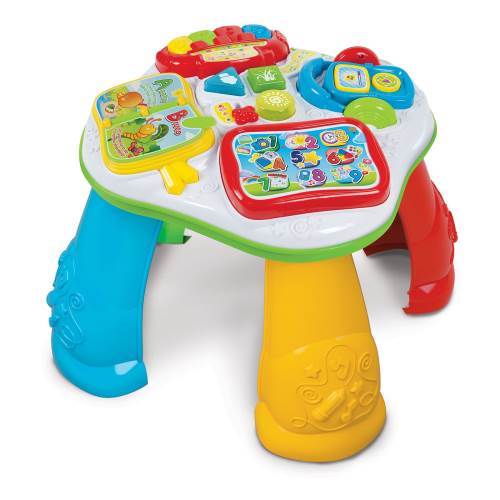 - Görme ve işitme becerilerini harekete geçirmek için tasarlanmış pek çok aktivite düğmesi içeren eğlenceli aktivite masası