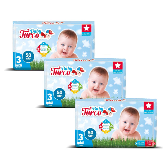 Baby Turco Bebek Bezi 3 Beden Midi 3x50 Adet