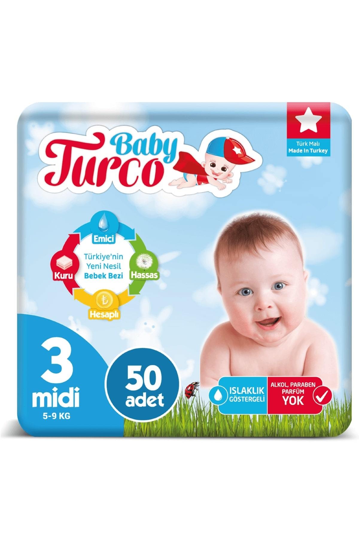 Baby Turco Bebek Bezi 3 Beden Midi 50 Adet