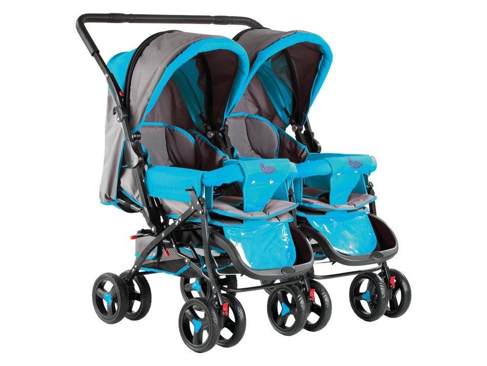 Babyhope BH611-25 Çift Yönlü İkiz Baston Bebek Arabası - Mavi Siyah