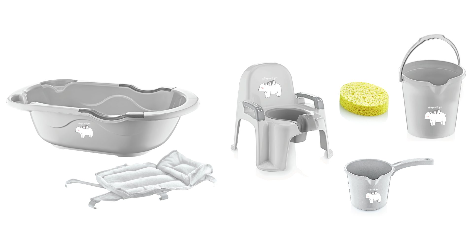 Şık hediyelik kutusunda satışa sunulan babyjem banyo seti içerisinde 1 adet giderli şeffaf desenli banyo küveti , 1 adet şeffaf desenli 10 lt banyo kovası , 1 adet şeffaf desenli banyo maşrapası , 1 adet köpüklü desenli küvet filesi, 1 adet selulozik banyo sünger, 1 adet şeffaf desenli afacan lazımlık mevcuttur.