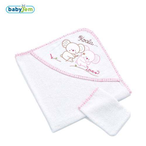 Babyjem Bebek Banyo Havlu Keseli Beyaz Pembe