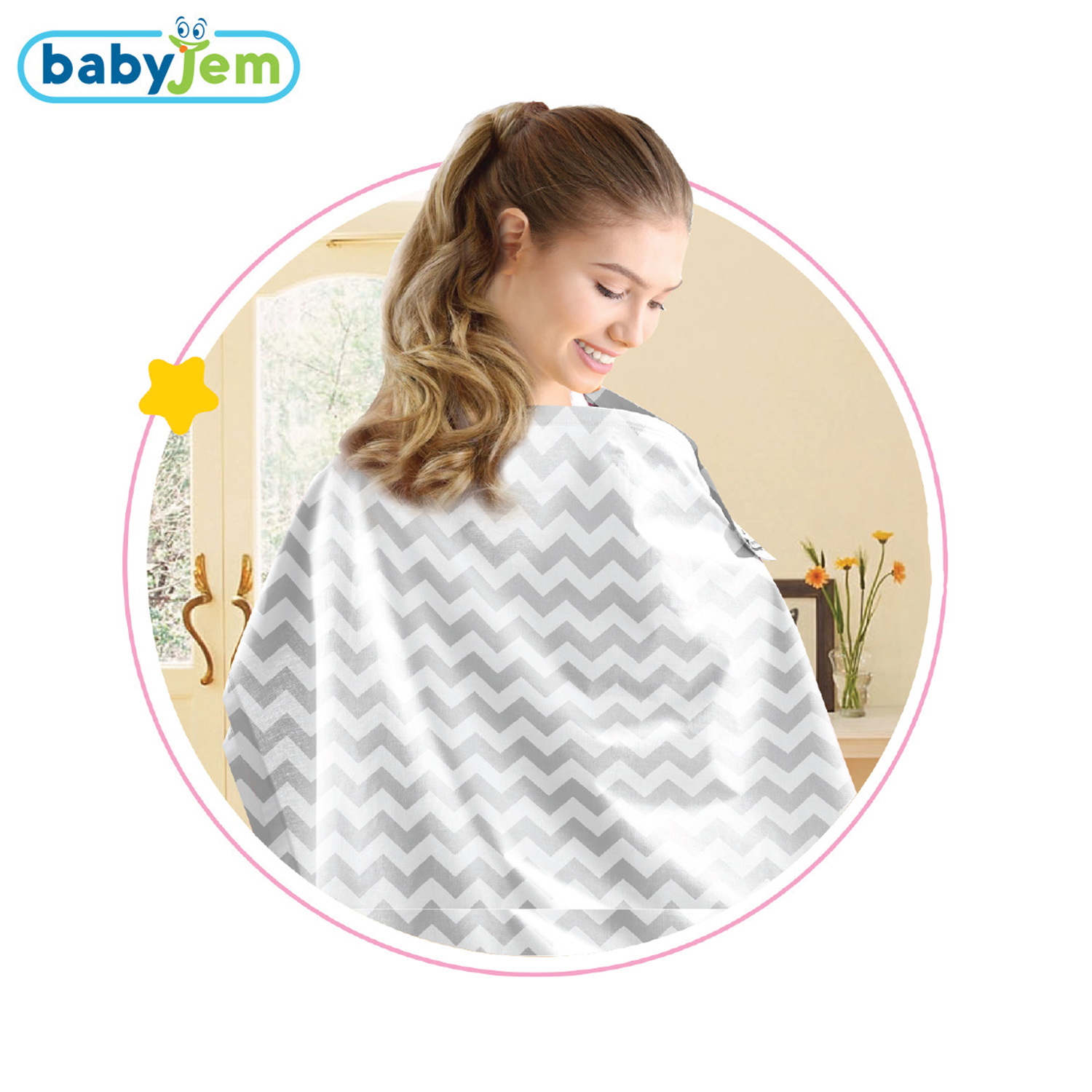 Dışarıda ve insanlar arasında bebeğini emzirmek,pek çok anne için stresli bir durumdur.Baby Jem emzirme önlüğü,pamuklu kumaşı sayesinde, bebeğinizi terletmeden emzirmenizi sağlar. Boyun askısını kendinize göre ayarlayarak ve askıyı boynunuzda geçirip, omzunuza gelen kısımda ki ringeller yardımcıyla, bebeğinizin tam olarak ne yaptığını görebilirsiniz. Kolay katlanır ve yer kaplamaz. Kullanımı kolay bu emzirme önlüğü ile bebeğinizi her ortamda rahatlıkla emzirebilirsiniz.