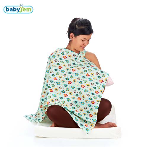 Dışarıda ve insanlar arasında bebeğini emzirmek,pek çok anne için stresli bir durumdur.Baby Jem emzirme önlüğü,pamuklu kumaşı sayesinde, bebeğinizi terletmeden emzirmenizi sağlar. Boyun askısını kendinize göre ayarlayarak ve askıyı boynunuzda geçirip, omzunuza gelen kısımda ki ringeller yardımcıyla, bebeğinizin tam olarak ne yaptığını görebilirsiniz. Kolay katlanır ve yer kaplamaz. Kullanımı kolay bu emzirme önlüğü ile bebeğinizi her ortamda rahatlıkla emzirebilirsiniz.