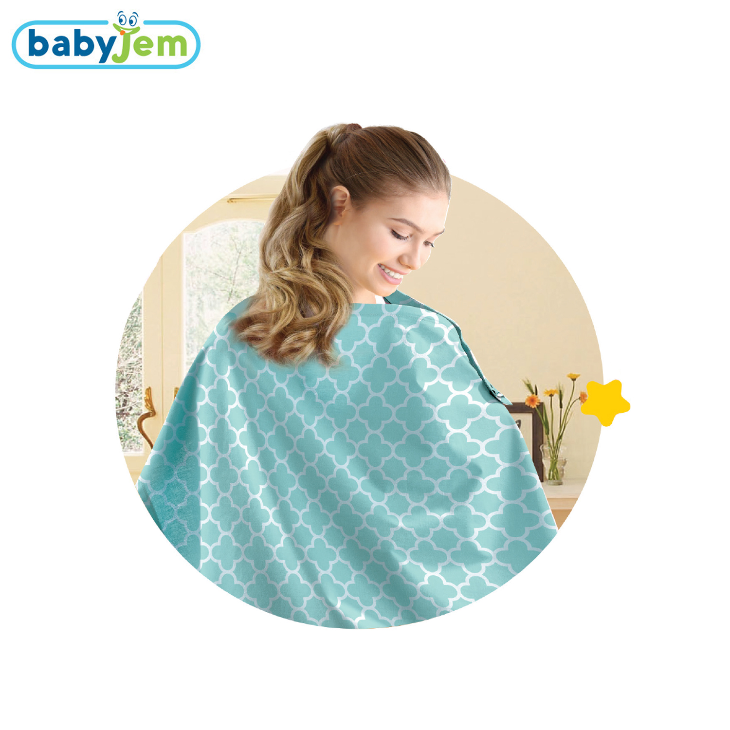 Dışarıda ve insanlar arasında bebeğini emzirmek,pek çok anne için stresli bir durumdur.Baby Jem emzirme önlüğü,pamuklu kumaşı sayesinde, bebeğinizi terletmeden emzirmenizi sağlar. Boyun askısını kendinize göre ayarlayarak ve askıyı boynunuzda geçirip, omzunuza gelen kısımda ki ringeller yardımcıyla, bebeğinizin tam olarak ne yaptığını görebilirsiniz. Kolay katlanır ve yer kaplamaz. Kullanımı kolay bu emzirme önlüğü ile bebeğinizi her ortamda rahatlıkla emzirebilirsiniz.