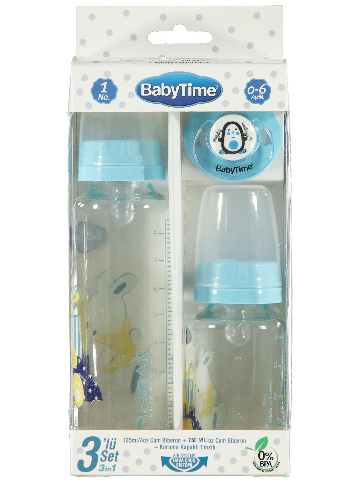 Babytime BT207 3'lü Cam Biberon Seti - Mavi
