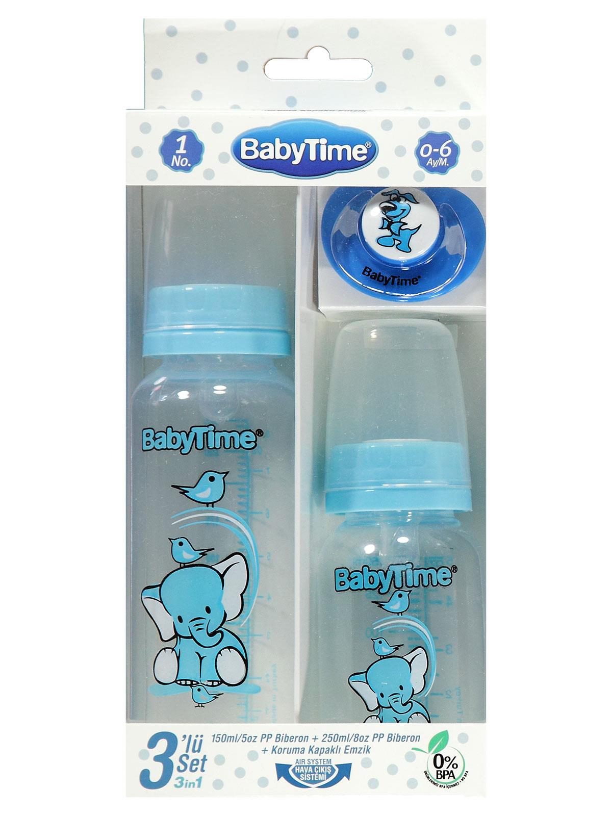 BabyTime BT515 Mini 3'lü Pp Plastik Biberon Set 0-6 Ay - Mavi