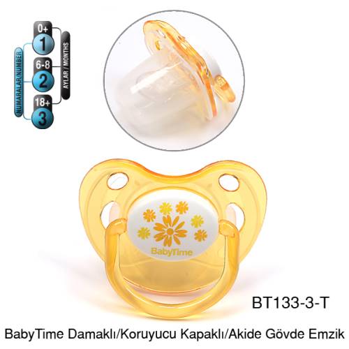 • BabyTime emzikleri ortodondik (Damaklı) ve Kiraz uçlu olarak tasarlanmıştır. Emzik aynasındaki kanallar nedeni ile ağızda fazlalık olarak biriken salya kolayca boşaltılır ve emzik aynasındaki delikler sayesinde hava dolaşımı kolayca gerçekleşir ve bebek hassas cildine zarar vermesi önlenir.