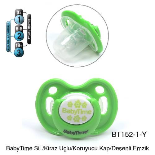 • BabyTime emzikleri ortodondik (Damaklı) ve Kiraz uçlu olarak tasarlanmıştır. Emzik aynasındaki kanallar nedeni ile ağızda fazlalık olarak biriken salya kolayca boşaltılır ve emzik aynasındaki delikler sayesinde hava dolaşımı kolayca gerçekleşir ve bebek hassas cildine zarar vermesi önlenir.