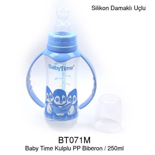 Babytime Silikon Damaklı Kulplu Biberon 250ml - Mavi