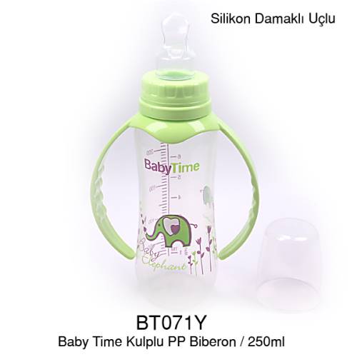 Babytime Silikon Damaklı Kulplu Biberon 250ml - Yeşil