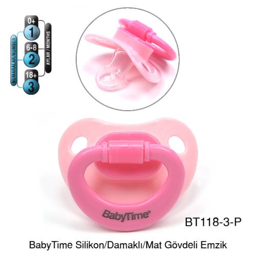 BabyTime Silikon Damaklı Mat Gövdeli Emzik 18+ Ay - Pembe
