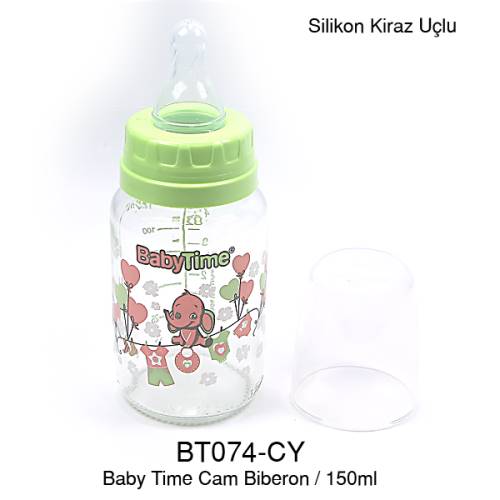 BabyTime Silikon Kiraz Uçlu Cam Biberon 150ml - Yeşil