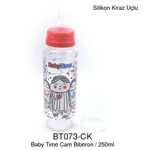 BabyTime Silikon Kiraz Uçlu Cam Biberon 250ml - Kırmızı