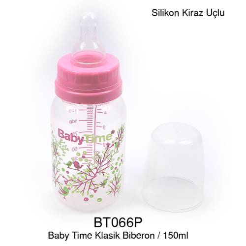 BabyTime Silikon Kiraz Uçlu Klasik Biberon 150ml - Pembe