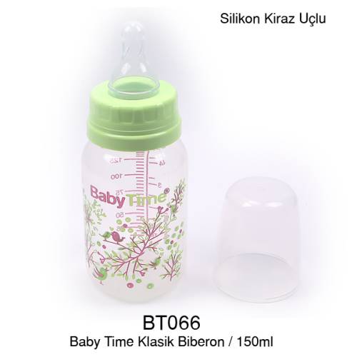BabyTime Silikon Kiraz Uçlu Klasik Biberon 150ml - Yeşil