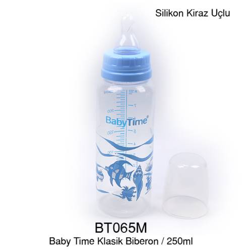 BabyTime Silikon Kiraz Uçlu Klasik Biberon 250ml - Mavi