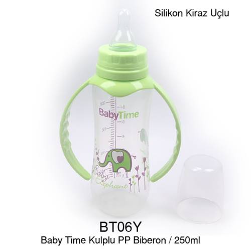 Babytime Silikon Kiraz Uçlu Kulplu Biberon 250ml - Yeşil