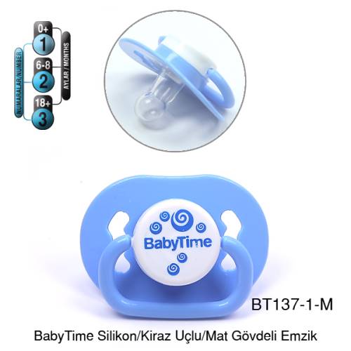 BabyTime Silikon Kiraz Uçlu Mat Gövdeli Emzik 0-6 Ay - Mavi