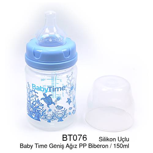 BabyTime Silikon Uçlu Geniş Ağızlı Biberon 150ml - Mavi