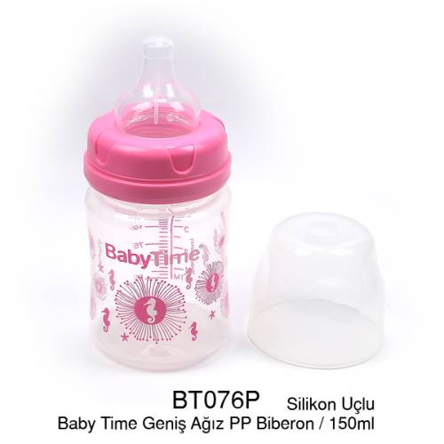 BabyTime Silikon Uçlu Geniş Ağızlı Biberon 150ml - Pembe