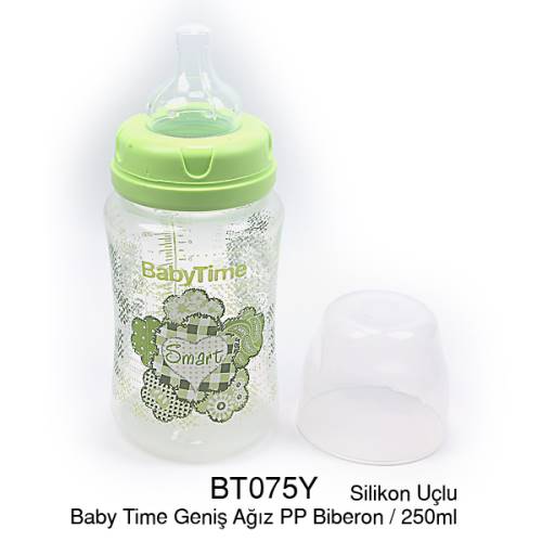 BabyTime Silikon Uçlu Geniş Ağızlı Biberon 250ml - Yeşil