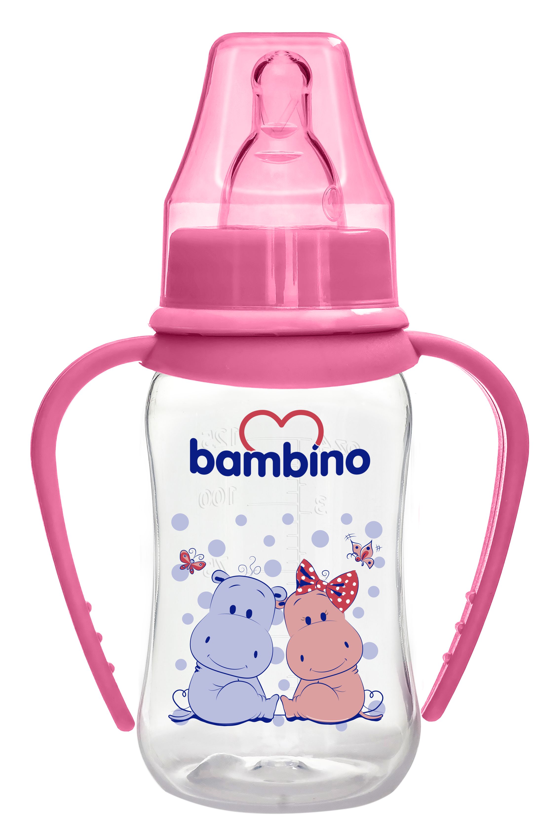 Bambino PP Kulplu Biberon 150 ml - Pembe Hippopotam