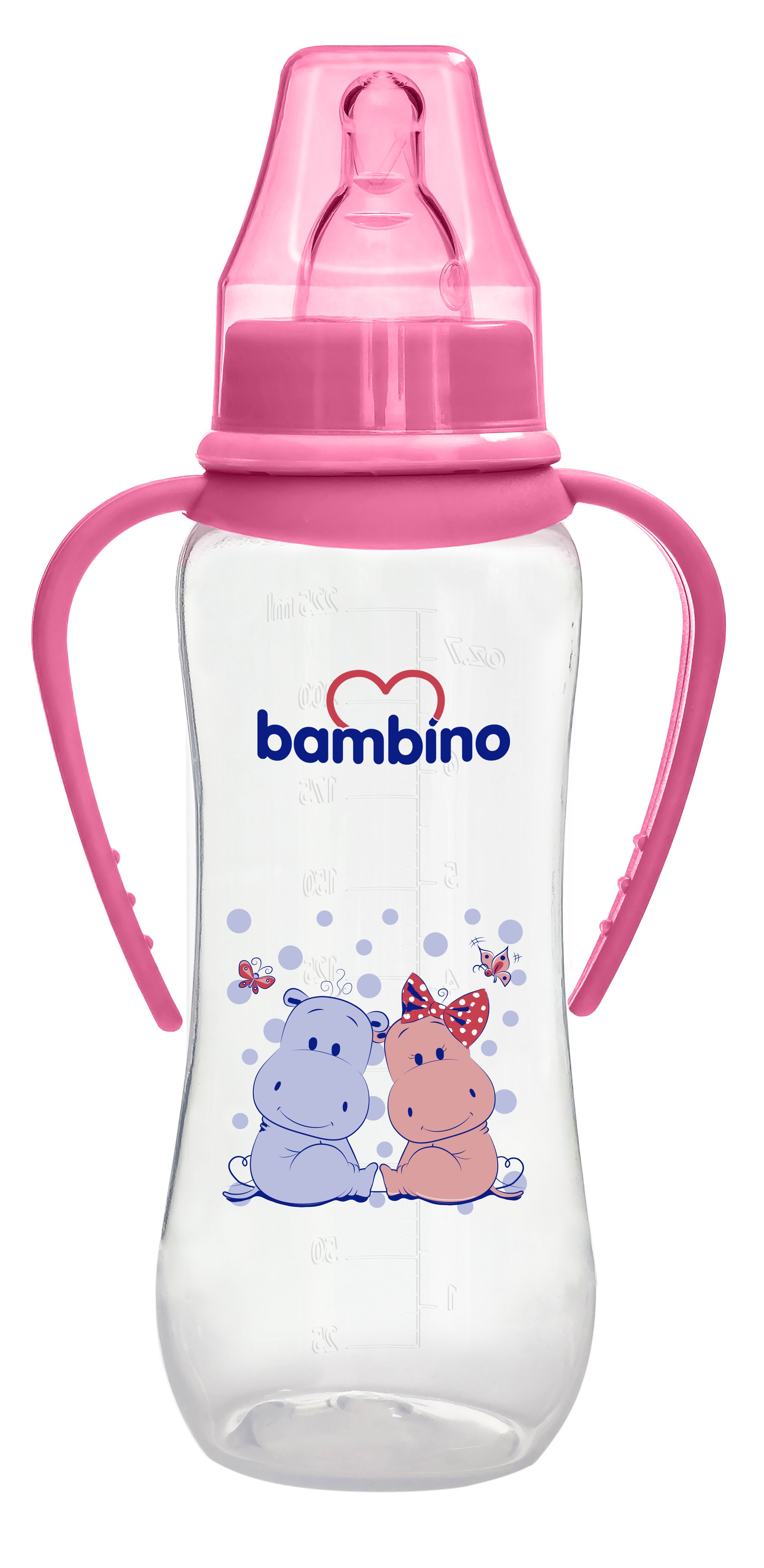 Bambino PP Kulplu Biberon 250 ml - Pembe Hippopotam