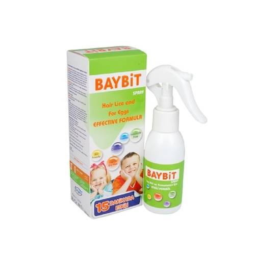 BAYBİT Bit Spreyi 100 mlMerhaba, ben BAYBİT Losyon saç biti konusunda uzmanım. Sizi, yoğun saç bitini giderme ve tedbir alma konularında destekleyeceğim. Bu minik „baş belaları“, kreşlerde, okullarda ve evlerimizde gittikçe daha da sık ortaya çıkıyor ve bize büyük sıkıntılar yaşatıyorlar. Aileleri zaman zaman perişan edebiliyorlar: Çocukların saç diplerinin kaşınmasına ve hatta acı çekmelerine yol açıyorlar. Bu durumda bütün evin dezenfekte edilmesi ve büyük bir temizliğin yapılması gerekir.Ayrıca saçı bitlenmiş çocuklarınızın, birlikte oynadıkları arkadaşlarının anne babalarına, gittikleri okul veya kreşe de haber verilmesi gerekir . . . Ve yapılması gereken daha birçok iş vardır . . .Ama artık rahat olabilirsiniz. Çünkü bite karşı etkili bir silahınız var!Benim desteğim ile saç biti sorununuz, artık sorun olmaktan çıkıyor.BAYBİT Sprey bitleri ve sirkeleri nasıl öldürüyor.BAYBİT losyonun aktif maddesi dimetikondur.Bu madde, bitin çevresini tamamıyla kaplayarak solunum ve boşaltım deliklerini tıkar. Bunun sonucunda bit vücudundaki aşırı suyu dışarı atamaz. Hareket etmeden olduğu yerde kalır.BAYBİTsprey baş bitini hareketsiz hale getirdiği için bit beslenemez ve açlıktan ölür.BAYBİT Sprey çocukların güvenliği açısından mükemmeldir.