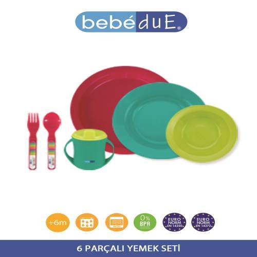• Yemek seti anatomik çatal, kaşık, düz tabak, derin tabak, kase, alıştırma bardağından oluşmaktadır.