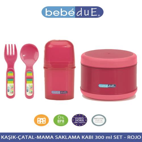 Bebedue Kaşık Çatal Mama Saklama Kabı 300 ML - Mor