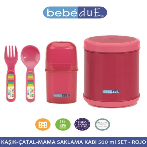 Bebedue Kaşık Çatal Mama Saklama Kabı 500 ML - Mor