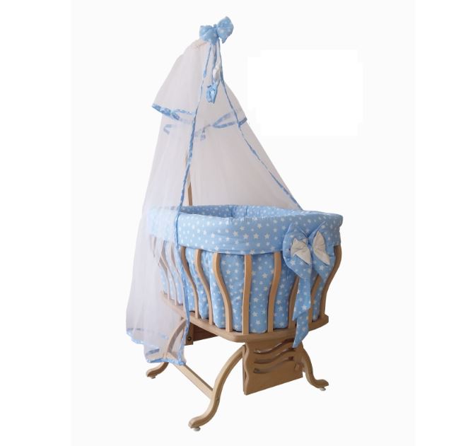 Bebetti 010-M Kristal Fiyonklu Beşik Tekstil+Beşik Seti Mavi