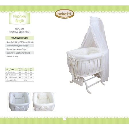 Bebetti 390 Fiyonklu Krem Beşik+Tekstil Seti