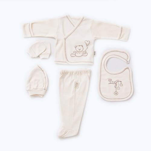 Bebetto Organik Zıbın Seti 5'li BBT-Z093 (Balonlu Ayı)