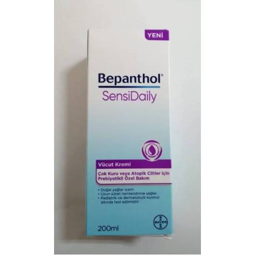 - Bepanthol SensiDaily Vücut Kremi çok kuru veya atopik ciltler için geliştirilmiş, bebeklikten itibaren kullanılabilen, prebiyotikli bir günlük vücut kremidir.