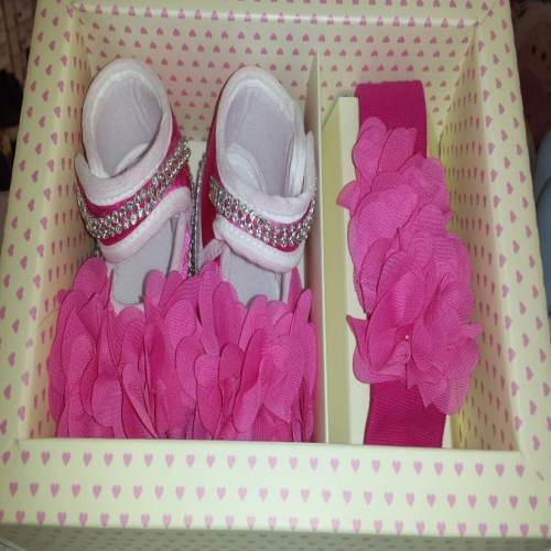 Bibi & Mimi 5117551 Pembe Çiçekli Fuşya Patik Bandana Set