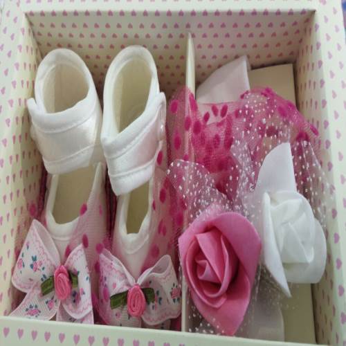 Bibi & Mimi Güllü Kurdeleli Beyaz Patik Bandana Set