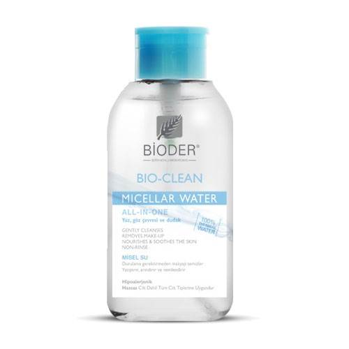 - Bioder Bio-Clean Misel Su, en hassas ciltler dahil tüm cilt tipleri için durulama gerektirmeden cildin günlük hijyenini ve makyaj temizliğini sağlar.