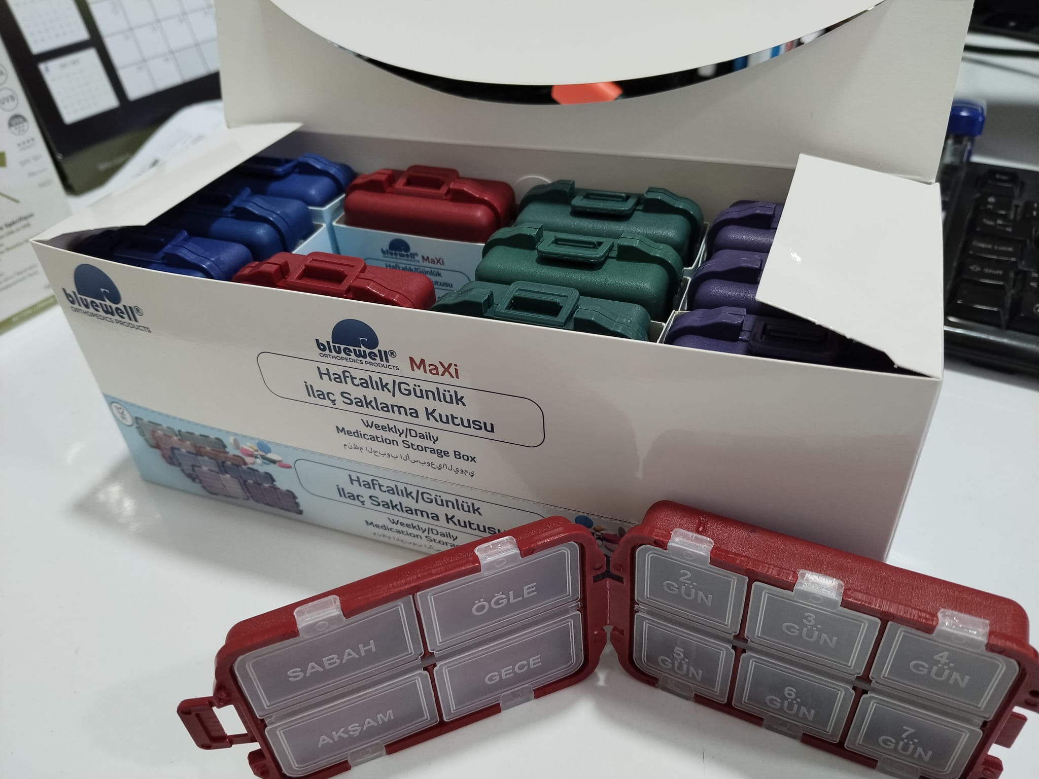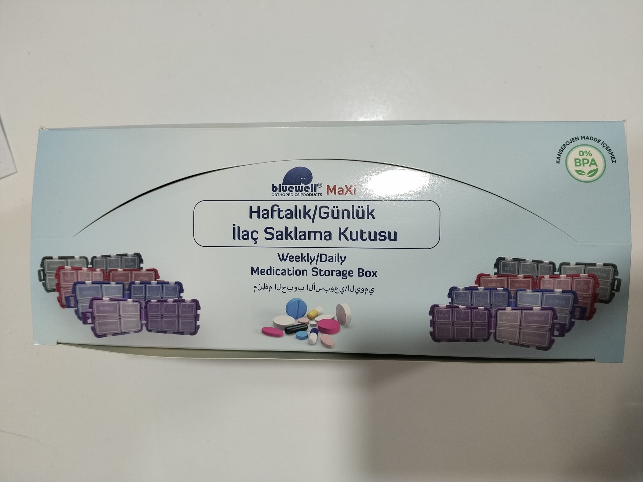 Bluewell Maxi Renkli Haftalık Günlük İlaç Saklama Kutusu 12'li