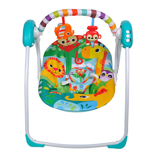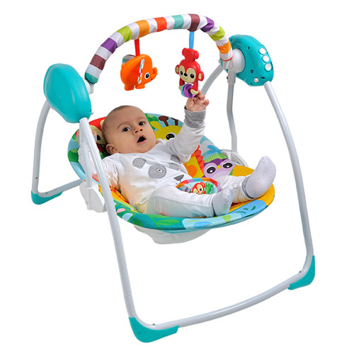 - Salıncağın yanlarından takılabilen oyuncak barında bulunan canlı renklere sahip maymun ve fil minikleri eğlendirir.