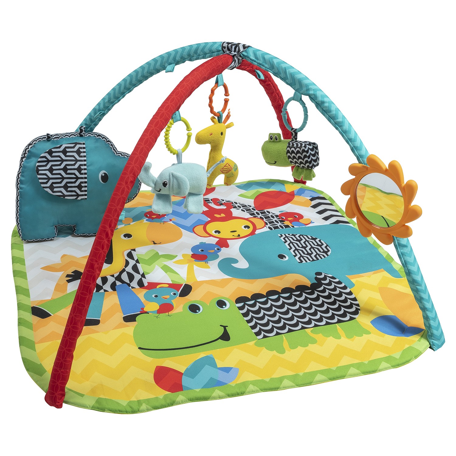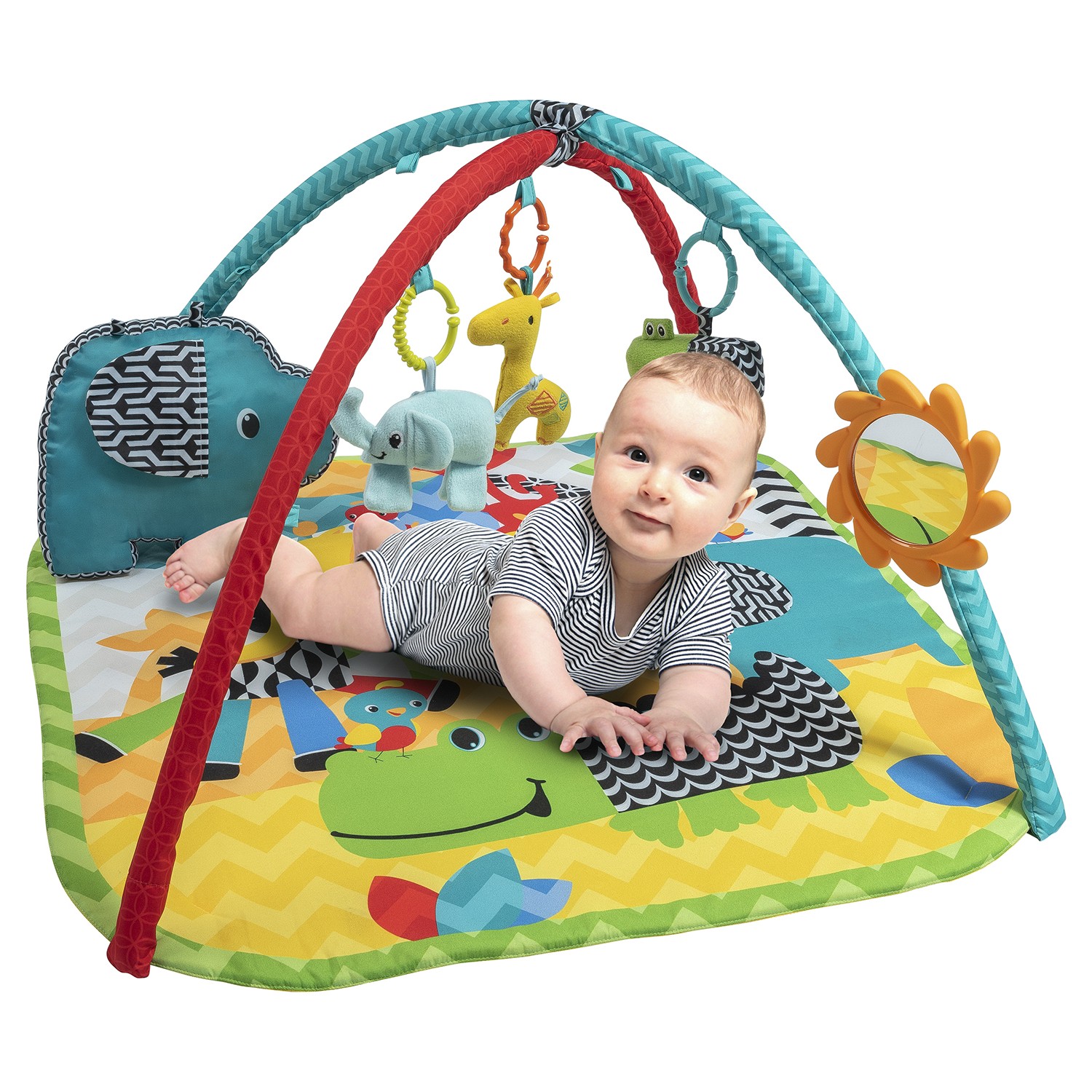 - Bebeğinizin kendini keşfetmesi için kırılmaz ayna ve renkli oyuncaklar bar üzerine kolayca yerleştirilebilir.